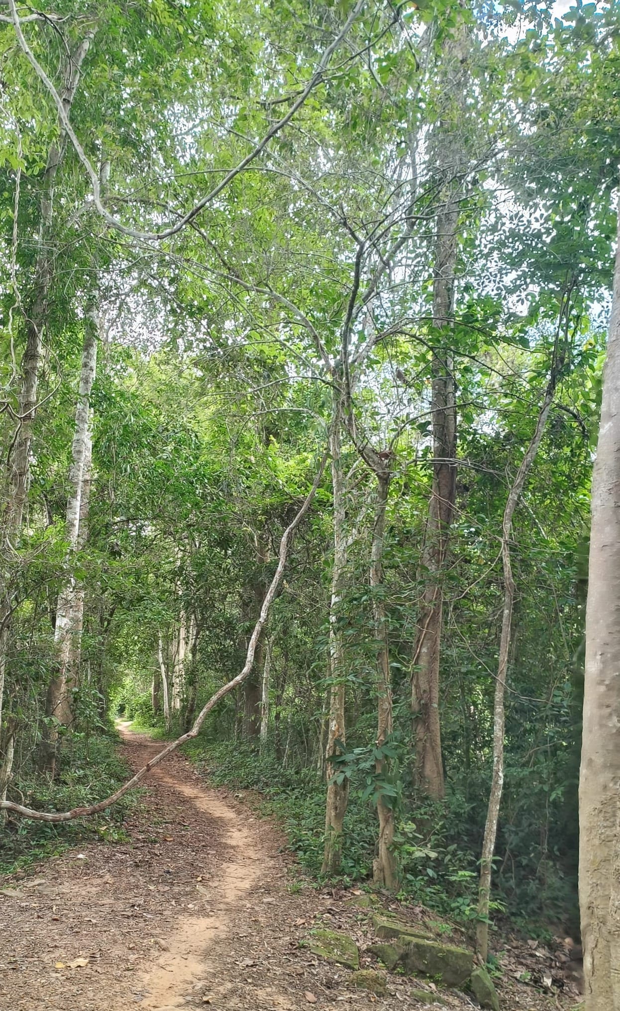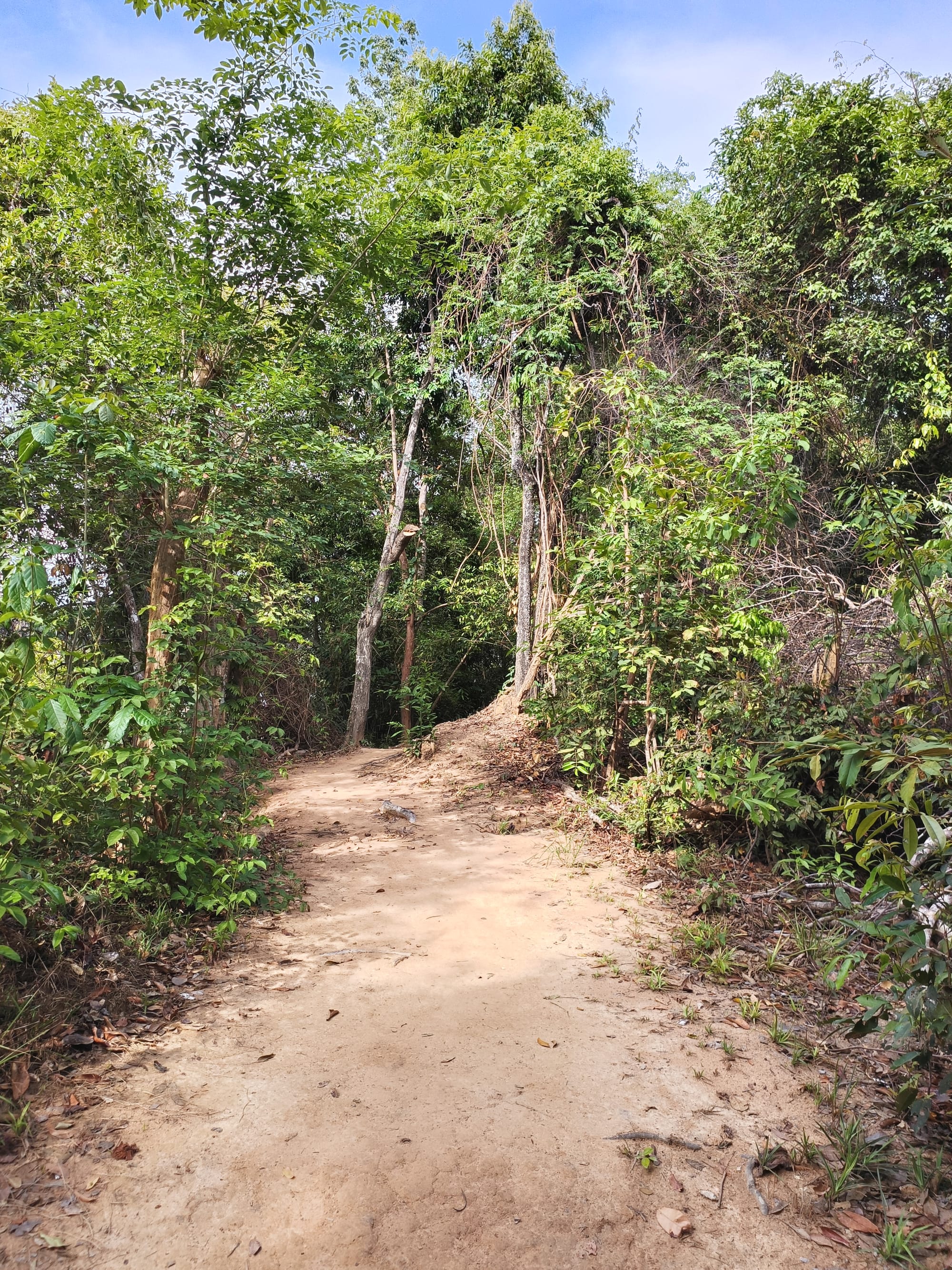 Following Google Maps at first, we turned onto a sandy jungle track. The concrete road vanished behind us, replaced by loose sand and narrow paths carved through dense vegetation. The bike wobbled slightly as the tires struggled for grip. Branches brushed against our arms, and the air smelled damp and earthy.
