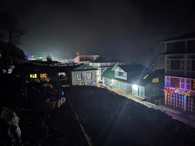 The clouds hung low over Lukla, thick and unmoving. Too cloudy for the small planes to land or take off safely. It stirred uneasy memories of our arrival, not by plane, but by helicopter, after days of uncertainty and weather delays. From a tiny window in the teahouse, we kept glancing upward, searching for breaks in the grey, as if sheer will might part the sky.
