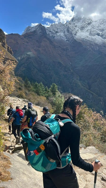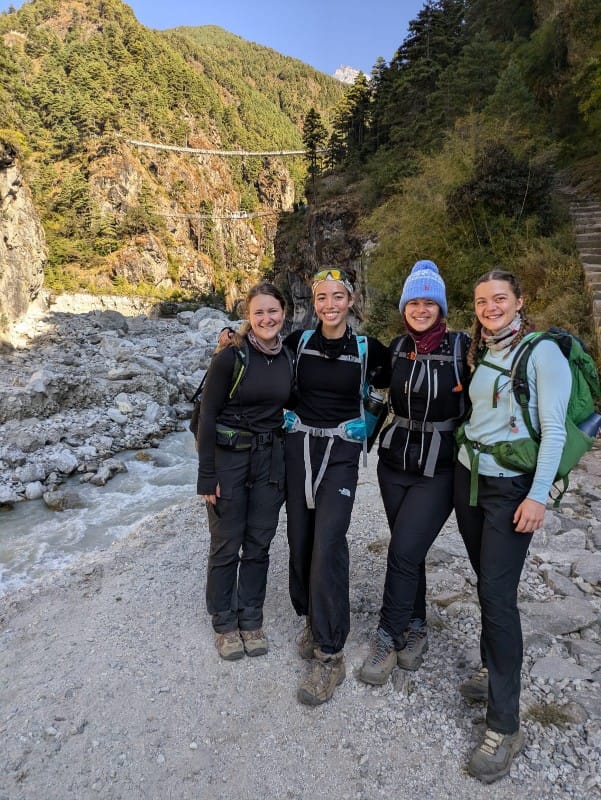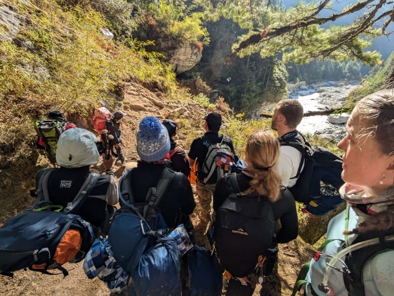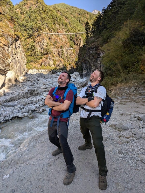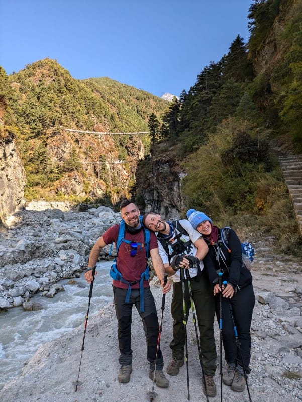The following morning, we set out again, another nearly 20 kilometers. This part of the trail felt gentle in comparison, familiar and friendly. We walked the same path we had taken upward, but now every landmark felt like a memory: the long suspension bridges, the stone steps carved into the mountainside, and the legendary Hillary Bridge swaying above the river. Revisiting it all felt like closing a full circle.