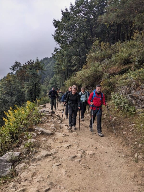 Just a few days earlier, we had stood here struggling for breath, hearts pounding, fighting our way up the steep path. Now we watched newcomers pushing upward with the same grim determination, stopping often, hands on their knees, fighting for each step. It felt surreal to be on the other side of that struggle.